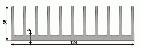 A5724-5 Radiator aluminiowy wymiary: 50mm x 35mm x 124 mm