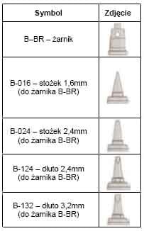 Użycie grotu B016 wymaga zakupienia także końcówki B-BR (żarnika)!