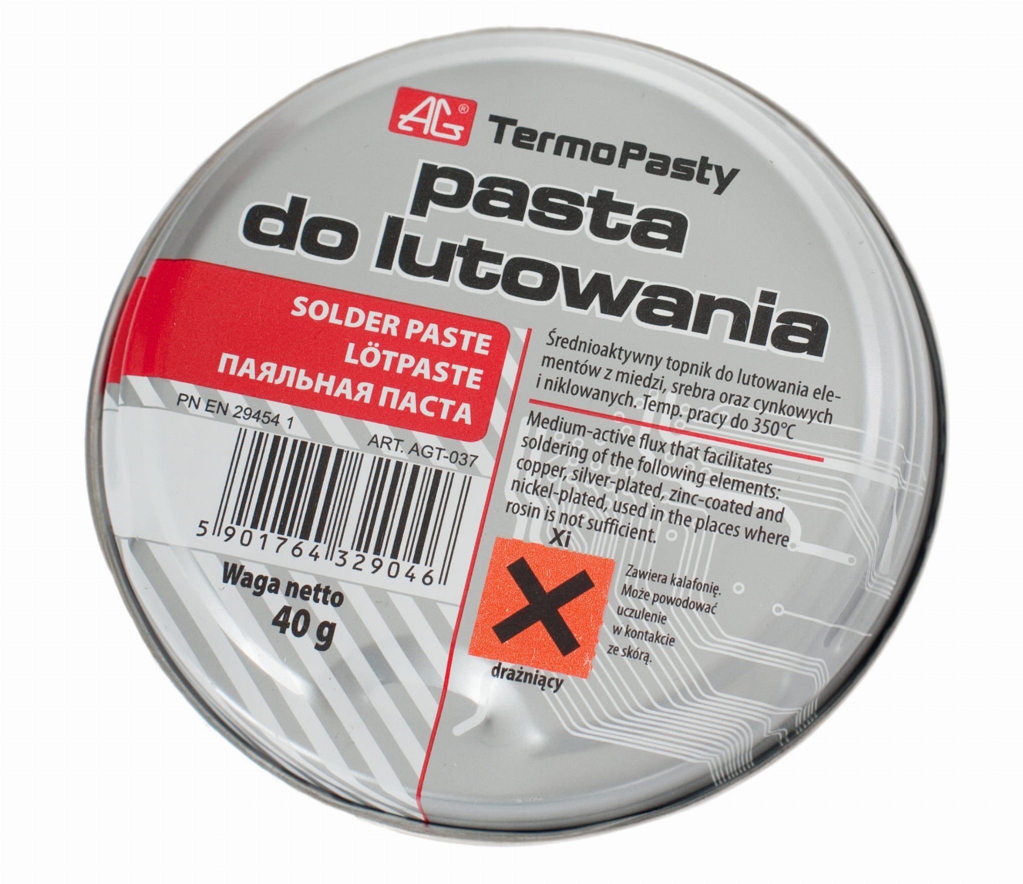 Pasta do lutowania to średnio aktywny topnik o konsystencji pasty sporządzony na bazie kalafonii i