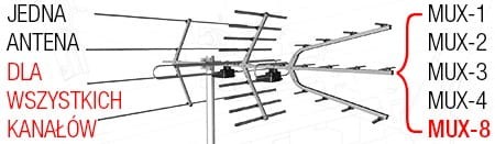 antena odbiera sygnały telewizyjne DVB-T z jednego kierunku