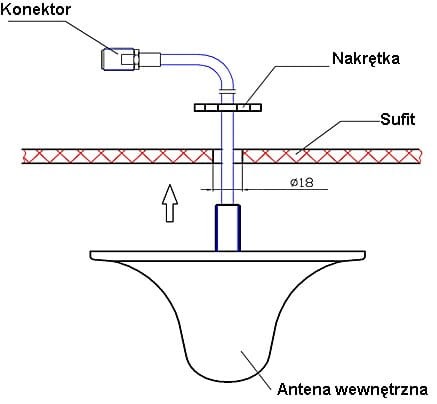 - Konektor antenowy wychodzący z boku anteny,