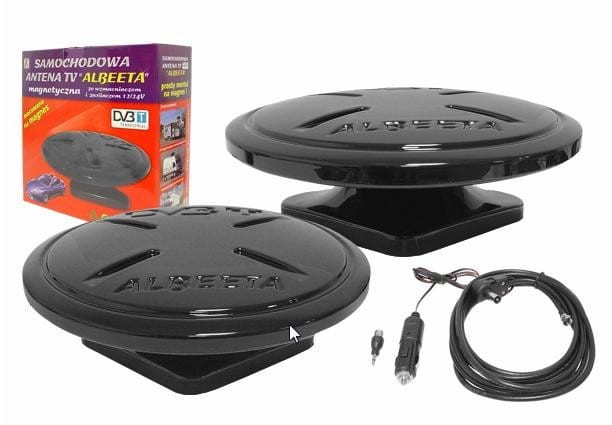 Antena TV ALBEETA to absolutna nowość na rynku anten mobilnych do odbioru stacji telewizyjnych cyfrowych DVB-T oraz analogowych w zakresie od 40MHz do 850MHz. Zaletą anteny są jej niewielkie rozmiary, waga oraz stabilna podstawa z trzema silnymi magnesami neodymowymi, które zapewniają stabilne i pewne mocowanie do elementów metalowych twojego pojazdu. Antena ta znakomicie sprawdzi się jako antena na obiektach ruchomych typu (jacht, samochód osobowy, samochód ciężarowy lub dostawczy, autokar, camper oraz jako antena pokojowa w twoim mieszkaniu lub domku letniskowym). Hermetyczna obudowa wykonana z najwyższej klasy komponentów oraz nowatorska konstrukcja wzmacniacza wykonana na podłożu ceramicznym sprawia, że antena jest bezkonkurencyjna na rynku anten mobilnych i pozwala na pracę w każdych warunkach pogodowych, zarówno podczas postoju jak i podczas jazdy. Bardzo istotną zaletą anteny jest jej dookólna charakterystyka kierunkowa, co w praktyce oznacza, że nie trzeba jej specjalnie kierować w stronę nadajnika. Zasilanie anteny odbywa się przez przewód koncentryczny doprowadzający wzmocniony sygnał do odbiornika za pośrednictwem dołączonego do zestawu zasilacza samochodowego 12V lub 24V.