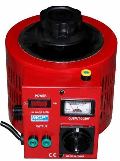 Autotransformatory z regulowanym napięciem wyjściowym, obudowa metalowa. Przeznaczone do użytku laboratoryjnego i przemysłowego. Z gałka i skala, wyłącznik sieciowy i lampka kontrolna, dodatkowy zacisk uziemiający oraz po stronie wtórnej, bezpiecznik i wyjście z dwoma zaciskami laboratoryjnymi śrubowymi.