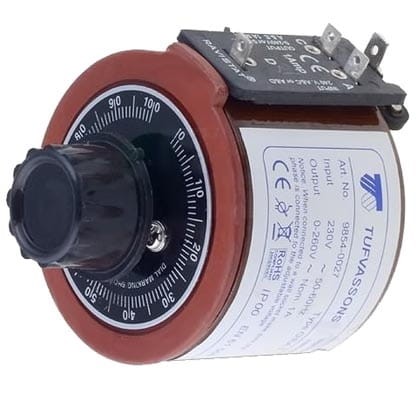 Autotransformatory z regulowanym napięciem wyjściowym, bez obudowy - do montażu na panel. Przeznaczone do użytku laboratoryjnego i przemysłowego. Z gałka i skala. Wejścia i wyjścia na zaciski śrubowe.