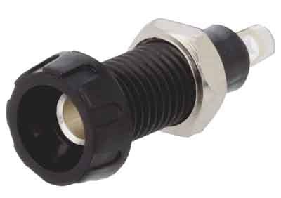 BAN-G-10DLC Gniazdo bananowe, na obudowę, gr. panelu: 13mm, czarne 10A