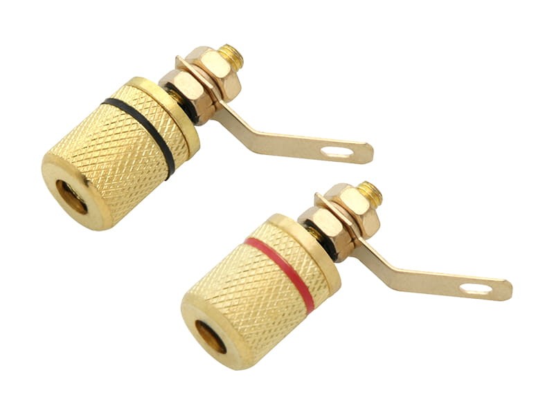 BANAN-G-AU-BR Gniazdo bananowe na obudowę złote, kpl.: czarny+czerwony