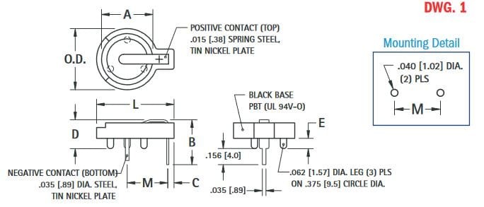 BAT-CR12K Podstawka pod baterie pastylkowe fi=12mm (BR1216, BR1220, BR1225, CL1220, CR1216) Keystone