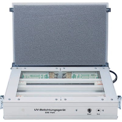 Urządzenie przeznaczone do naświetlania płytek pokrytych warstwami światłoczułymi. Umożliwia proces naświetlania czterech płytek jednocześnie, jednowarstwowych. Obudowa z elektrolitycznie anodowanego aluminium, zawiera oszlifowaną szybę ze szkła kryształowego oraz źródło światła w postaci czterech świetlówek fluorescencyjnych UV. Równomierny docisk płytek zapewnia powłoka z tworzywa piankowego, znajdującego się pod pokrywą. Bardzo dobre, jasne oświetlenie, gwarantuje odtwarzanie szczegółów z dużym stopniem dokładności. Posiada zegar elektroniczny z cyfrowym wyświetlaczem. Regulowany czas ekspozycji: od 1 sekundy do 100 minut. Gniazda kątowe na szybie umożliwiają precyzyjne umieszczanie naświetlanych elementów.