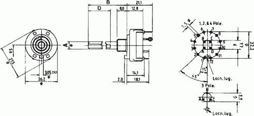 CK1059 Przełącznik obrotowy - 1 sekcja 12 pozycji NZ (zwierający, do druku)