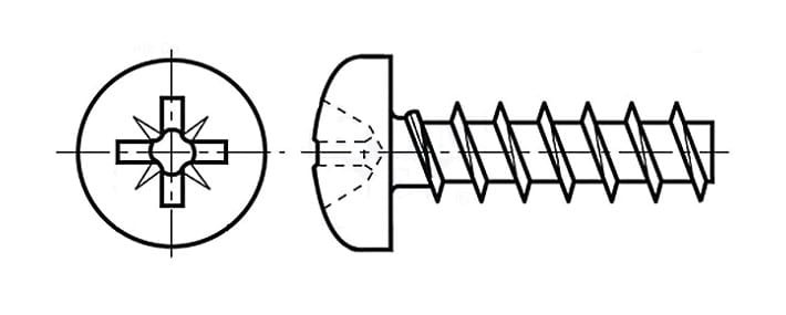 DBT2.2x16WK/10 Wkręt do tworzyw - walec wypukły (kulisty) - krzyżak (pozidriv) - stal ocynk - kpl. 10 sztuk