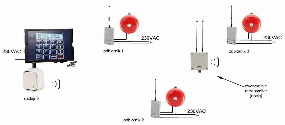 - Przycisk PDH-227 + odbiornik BSD-202 + retransmiter RT-236 zasięg 250 m