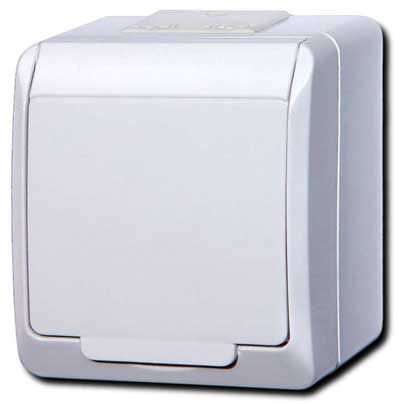 - Osprzęt natynkowy posiada stopień ochronny IP 44. Łączniki i podświetlane przyciski tej serii montujemy natynkowo za pomocą wkrętów lub kołków bezpośrednio na ścianę, a przewód doprowadzany jest z góry lub dołu korpusu.