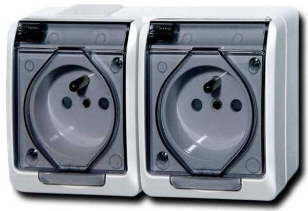 GAC250PL-HND2 Gniazdo 250V - standard PL - 3 biegunowe, białe dymne 16A - natynkowe, hermetyczne (podwójne)