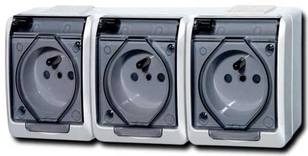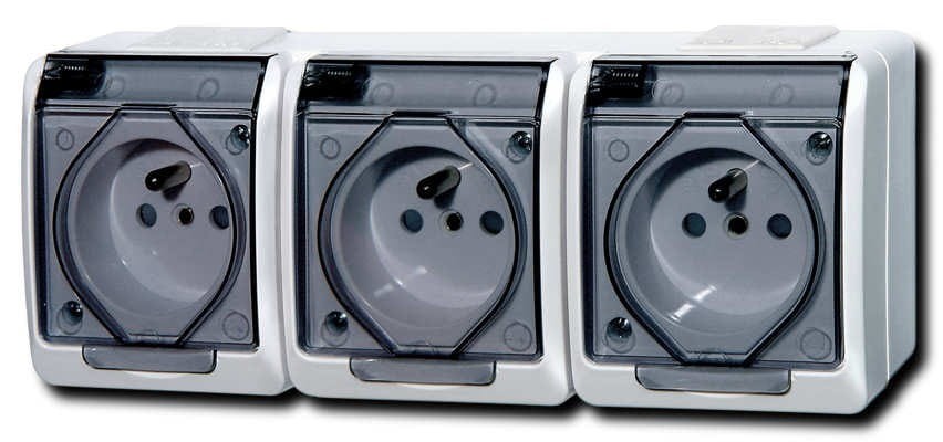 GAC250PL-HND3 Gniazdo 250V - standard PL - 3 biegunowe, białe dymne 16A - natynkowe, hermetyczne (potrójne)