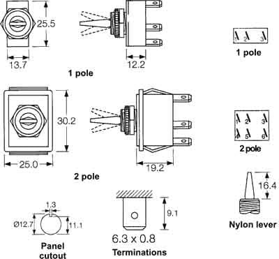 HEB8-3 Przełącznik hebelkowy ON-OFF 2 pozycje stabilne, czarny 2 styki