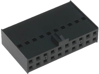Listwa 20-stykowa, 2-rzędowa mini-latch zaciskana na kable w rastrze 2.54mm. Do współpracy z listwami kołkowymi męskimi PH 2.54. Styki złocone.