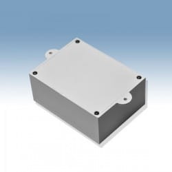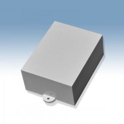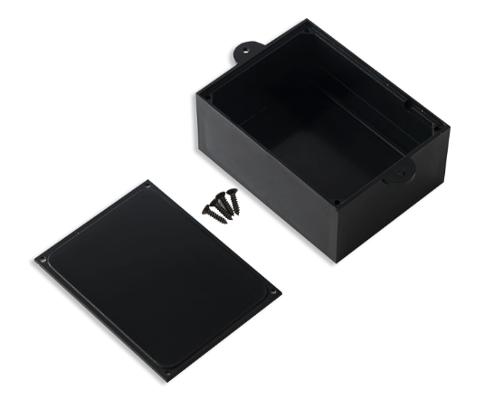 Obudowa z tworzywa pełna z mocowaniem. Składa się z dwóch części. Łączenie dolnej i górnej części odbywa się za pomocą 4 wkrętów w narożnikach obudowy. Dolna część obudowy posiada "uszy" umożliwiające mocowanie do podłoża.