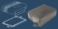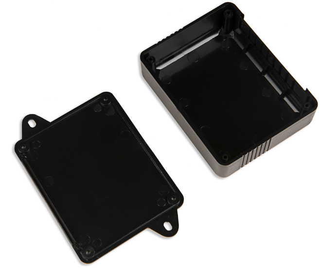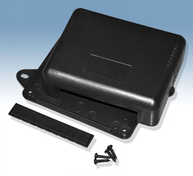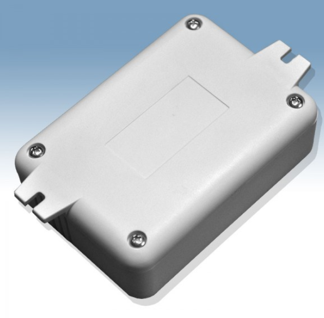 Obudowa z tworzywa pełna z mocowaniem. Składa się z dwóch części. Łączenie dolnej i górnej części odbywa się przy pomocy czterech wkrętów w narożnikach obudowy. Dolna część obudowy posiada "uszy" umożliwiające mocowanie do podłoża.