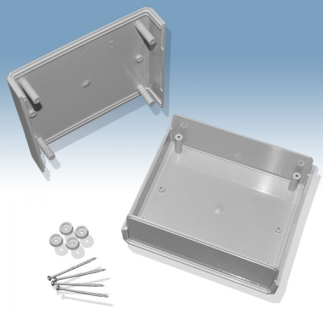 Obudowa z tworzywa z panelem, składa się z czterech części. Łączenie dolnej i górnej części odbywa się przy pomocy czterech wkrętów w narożnikach obudowy.