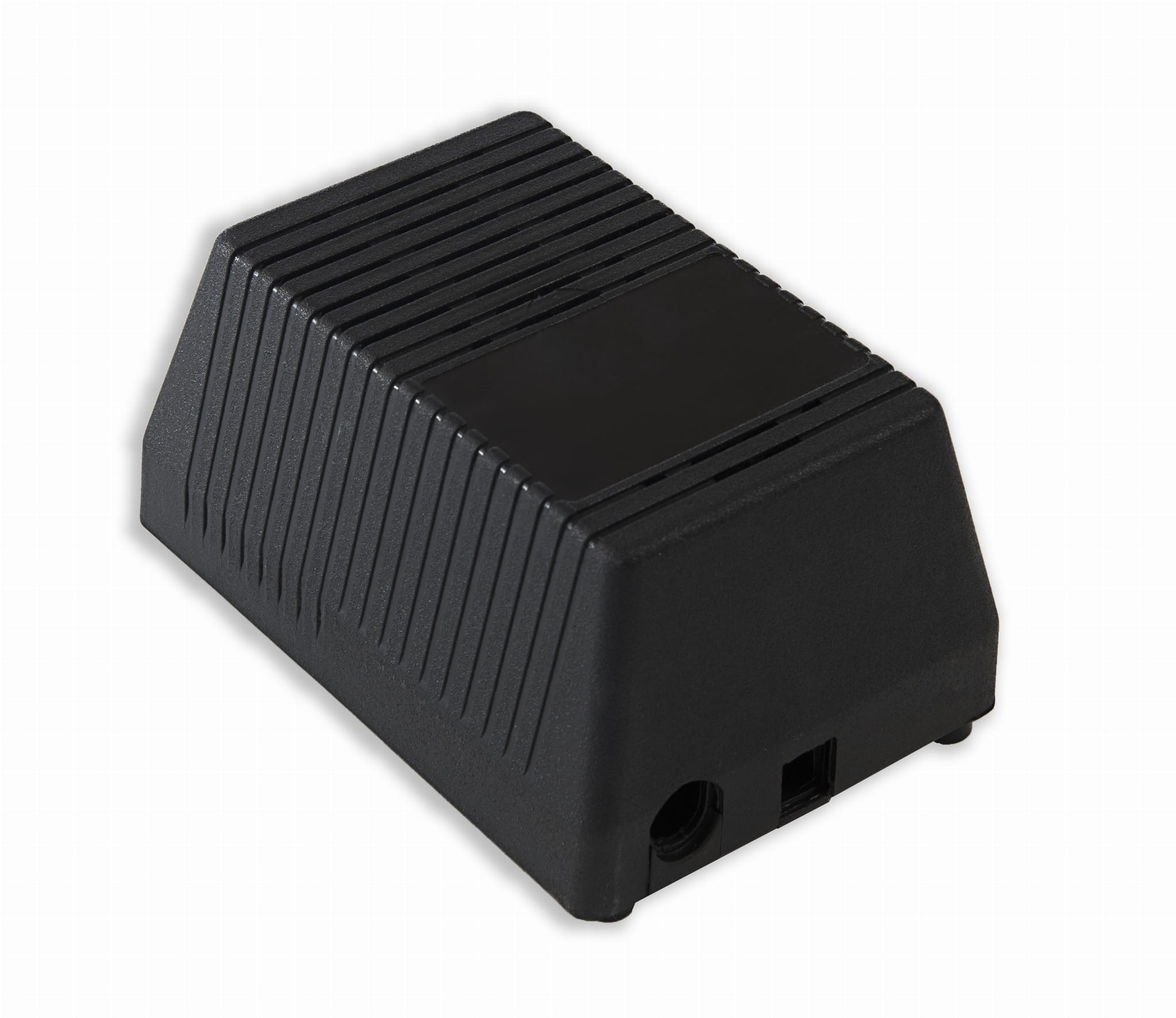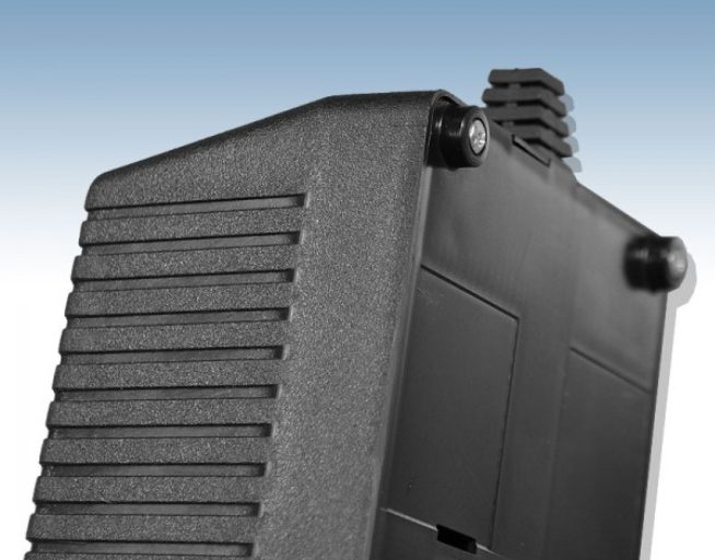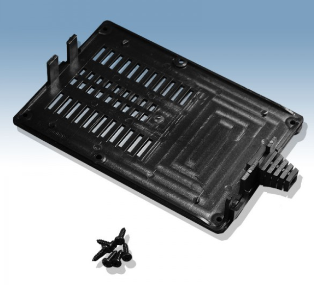 Obudowa z tworzywa zasilacza, posiada otwory wentylacyjne. Idealna do wolno stojącego zasilacza lub urządzenia zasilanego z sieci 230V. Składa się z dwóch części. Łączenie dolnej i górnej części odbywa się przy pomocy sześciu wkrętów. Spód obudowy posiada również cztery wbudowane nóżki. Pokrywa obudowy dodatkowo posiada na froncie prostokątne zagłębienie o wymiarach 42 x 68[mm],które doskonale nadaje się do umieszczenia np. etykiety. Obudowa posiada miejsce na oprawkę bezpiecznikową, kontrolkę lub włącznik.