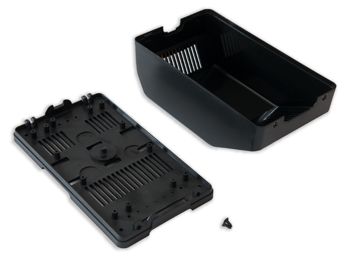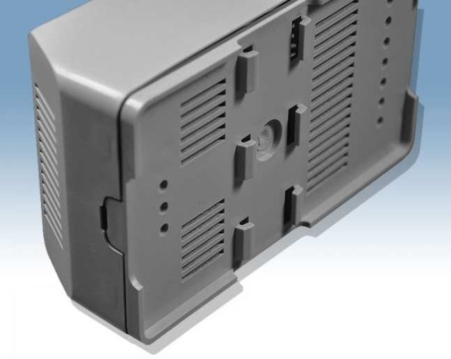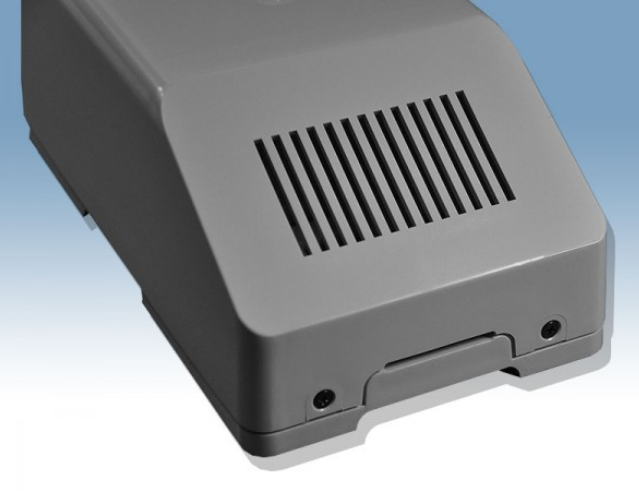 Obudowa z tworzywa zasilacza, posiada otwory wentylacyjne. Składa się z dwóch części. Łączenie dolnej i górnej części odbywa się przy pomocy dwóch wkrętów. Spód obudowy przystosowany do nasunięcia na szynę.