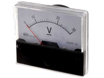 - Właściwości przyrządów pomiarowych: analogowy pomiar napięcia stałego