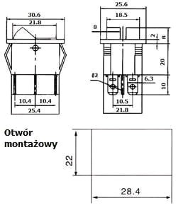 - Wymiary otworu montażowego 28 x 22mm