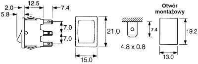 - Wymiary otworu montażowego 19.4 x 13mm