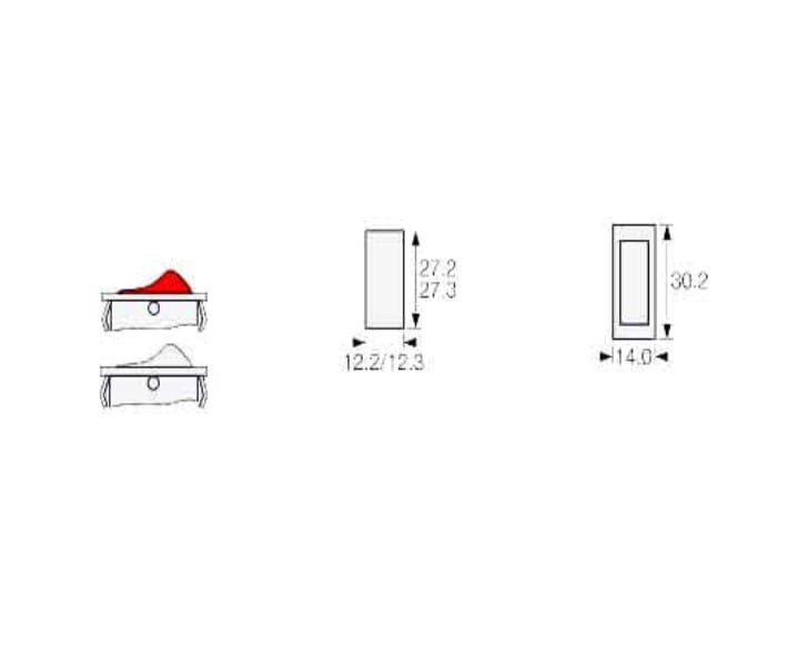 MK1029R Przełącznik kołyskowy, czerwony, jednobiegunowy 230V ON-OFF [SPST] otwór montażowy: 27,2x12,2mm