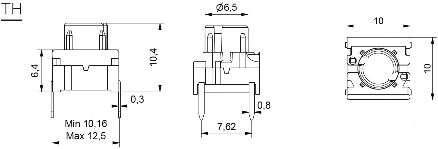 - Wysokość przycisku: (mierzona od PCB) 10,4mm