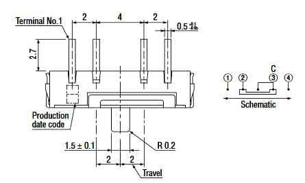 PSM13G4 Przełącznik suwakowy 1 sekcja, 3 pozycje, pionowy
