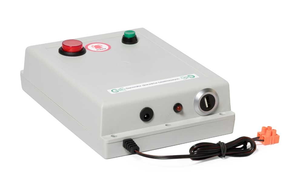 - model posiada alarm włączany ręcznie - duży czerwony przycisk z naklejką "alarm"