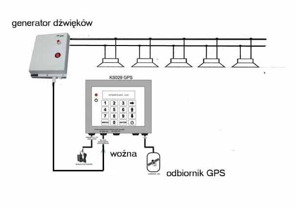 Instalacja: w miejsce istniejących dzwonków instalujemy głośniki z naszej oferty i wykorzystujemy istniejące przewody do połączenia głośników z generatorem. Do generatora podpinamy woźną (programowany sterownik dzwonków). I pozostaje tylko wczytać z pendrive nagraną wcześniej melodię. Na drugim zdjęciu pokazujemy schemat połączenia