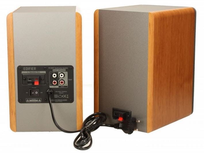 R1280T można podłączyć do wielu urządzeń audio za pomocą podwójnych wejść RCA. Patrząc na tylny panel można łatwo rozpoznać, które z nich jest głośnikiem pasywnym, a drugie aktywnym. Głośnik aktywny posiada dwa wejścia umieszczone na tylnej ściance. Wejścia te są idealne dla połączeń RCA do RCA lub RCA do AUX. Głośniki są połączone ze sobą za pomocą zwykłego przewodu głośnikowego.