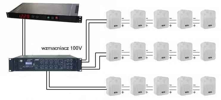SD-ZESTAW07-32 Sterownik dzwonków szkolnych z wyjściem AUDIO do systemów radiowęzłowych - przykładowy zestaw 32 głośników