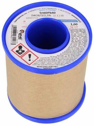 - Skład stopu: Sn60Pb40, stop cyny (60 ± 1%) i ołowiu (40 ± 1%)