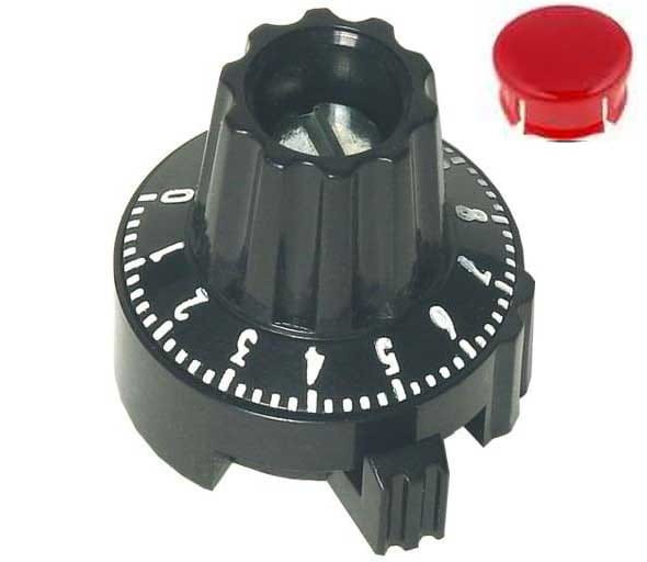 SPEC-L01R Gałka obrotowa z podziałką (1 obrót) do potencjometrów [22x23.1mm] - z aretażem - zaślepka czerwona
