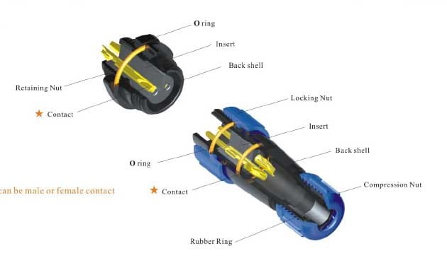 Kompaktowe złącze wtykowe o dużej szczelności. Odporna obudowa z poliamidu zgodna z UL94V-0. Klasa szczelności IP68.
