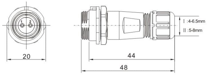 - Złącze: gniazdo na kabel, gwint zewnętrzny