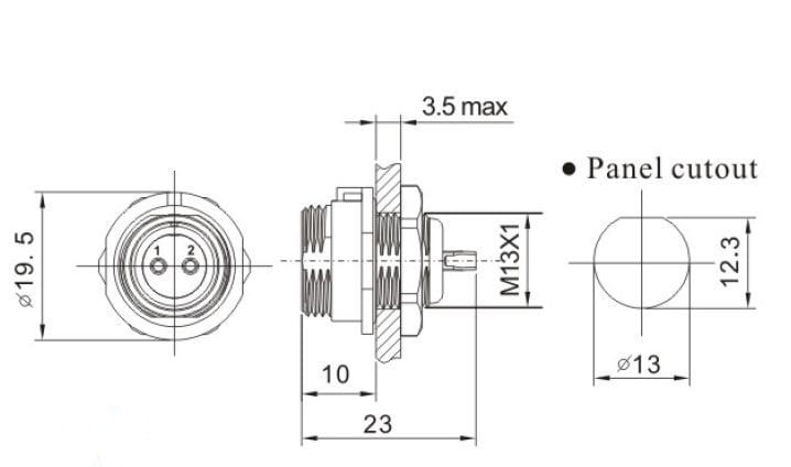 - Montaż mechaniczny: na panel, nakrętka od tyłu, przykręcane