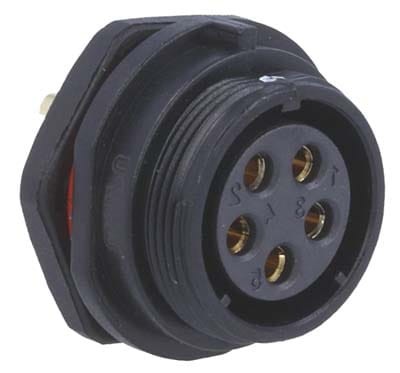 SPP2112-5GZ-P Gniazdo 5 pin, zakręcane na obudowę, wodoodporny - gwint zewnętrzny, 500V, 30A