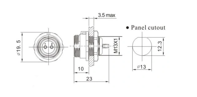 - Montaż mechaniczny: na panel, nakrętka od tyłu, przykręcane