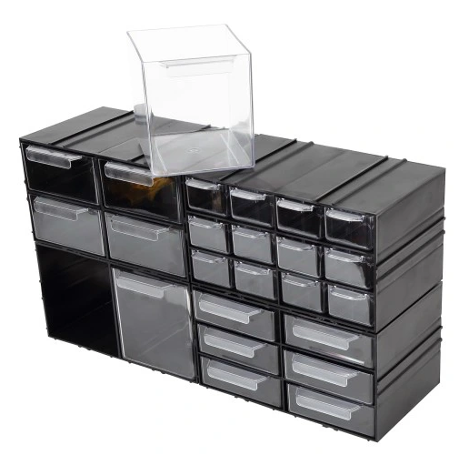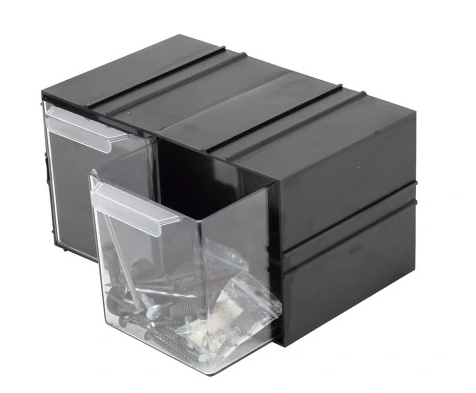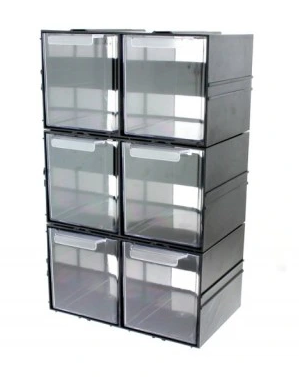 Szafka z tworzywa sztucznego (polipropylen) zawierająca 2 przezroczyste szufladki to doskonałe rozwiązanie do przechowywania bardzo drobnych elementów.