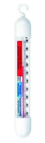 Zarówno w przemyśle, jak i warunkach domowych może przydać Ci się termometr lodówkowy. Jest on przeznaczony do pomiaru temperatury w rozmaitych urządzeniach chłodniczych – dzięki jego obecności łatwo i szybko stwierdzisz, czy w zamrażarce lub chłodziarce panują odpowiednie warunki do przetrzymywania żywności. Termometr ten został wykonany ze szklanej rurki i obudowy z tworzywa sztucznego, dlatego jest solidnym przyrządem, który wykazuje odporność na uszkodzenia mechaniczne czy oddziaływanie wilgoci. Posiada specjalny uchwyt, który ułatwi Ci jego umieszczenie w lodówce lub pomieszczeniu chłodniczym. Termometr lodówkowy posiada duży zakres temperatur, a jego skala jest opatrzona w dodatkowe informacje, które pomogą Ci ocenić stan funkcjonowania urządzeń.