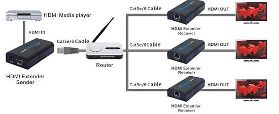 - Urządzanie doskonale nadaje się do podłączenia tunera satelitarnego, odtwarzacza DVD, komputera czy konsoli do odbiornika oddalonego od urządzeń. Do telewizora należy doprowadzić tylko jedną skrętkę komputerową co ułatwia instalacje urządzenia oraz poprawia wygląd instalacji telewizora zawieszonego na ścianie przy pomocy uchwytu LCD.
