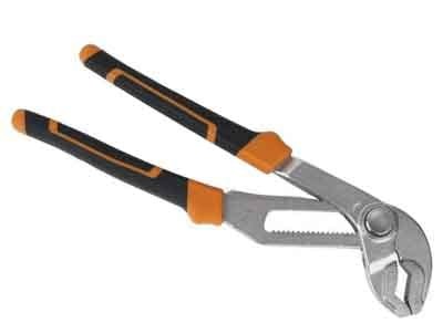Przedstawione na fotografii szczypce nastawne posiadają rozsuwane powierzchnie trzymające. Dzięki takiej budowie umożliwiają chwytanie rur różnych rozmiarów, przez co znajdują zastosowanie podczas wykonywania prac hydraulicznych oraz monterskich związanych z wodociągami bądź armaturą.