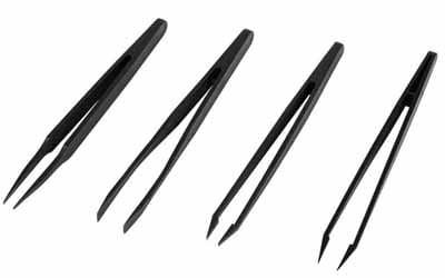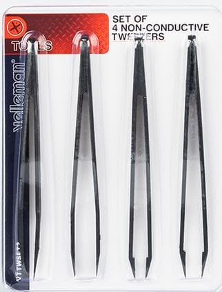UM127.96 Komplet 4 pęset: prosta, łopatkowa, płaska, precyzyjna, - długość: 118mm