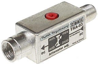 Urządzenie przeznaczone do zmniejszania poziomu sygnału w instalacji antenowej Telewizji naziemnej. Tłumik posiada odlewaną obudowę, co gwarantuje skuteczne ekranowanie zakłóceń. Posiada przejście słaboprądowe.