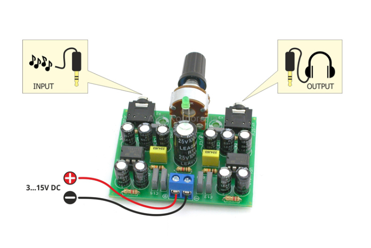 Dwukanałowa końcówka mocy opiera swą budowę na wzmacniaczach TDA7233. Do poprawnej pracy, wymagana jest minimalna ilość elementów, co czyni ten projekt bardzo prostym. Do złącza wyjściowego minijack stereo dołączamy słuchawki o impedancji większej niż 2Ω. Najlepsze wyniki osiąga się ze słuchawkami o impedancji 32Ω.