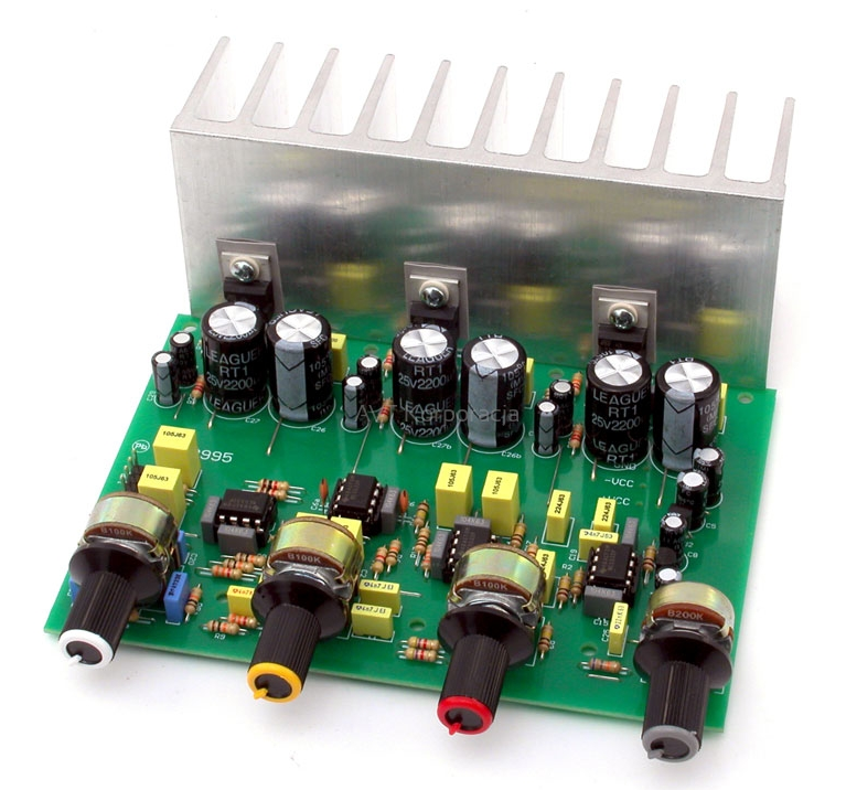 Wzmacniacz stereofoniczny pracujący w standardzie 2+1 (dwa kanały stereo i subwoofer). Zaprojektowano go z wykorzystaniem popularnych układów scalonych TDA2050. Moduł wyposażono w przedwzmacniacz z regulacją barwy dźwięku. Doskonale nadaje się do współpracy z dowolnym źródłem sygnału np. odtwarzacz MP3 lub komputer.